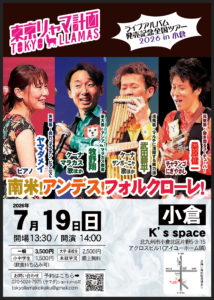 料金:前売り5,000円 / 当日5,500円 / 学生4,000円(南米ミニコース+2,000円)